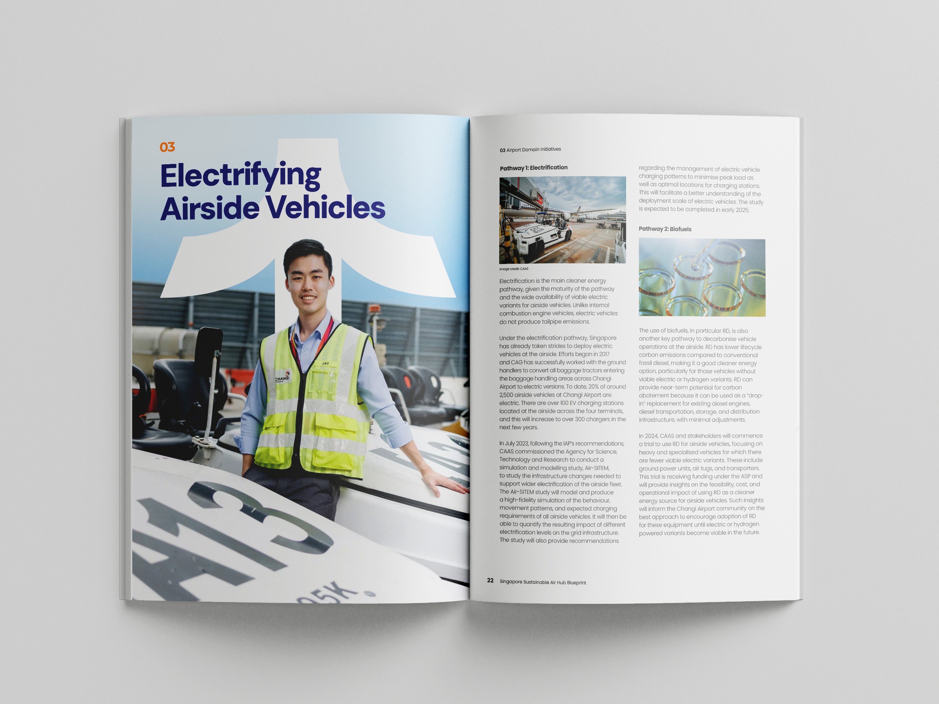 We created a brand built on upward momentum. The logo merges an ascending arrow with an aircraft symbol, visualizing progress toward sustainable skies. A bold blue-and-cyan palette conveys trust and professionalism, while the modular arrow pattern creates a flexible system that scales from business cards to conference stages—positioned to lead the conversation on aviation's sustainable future.