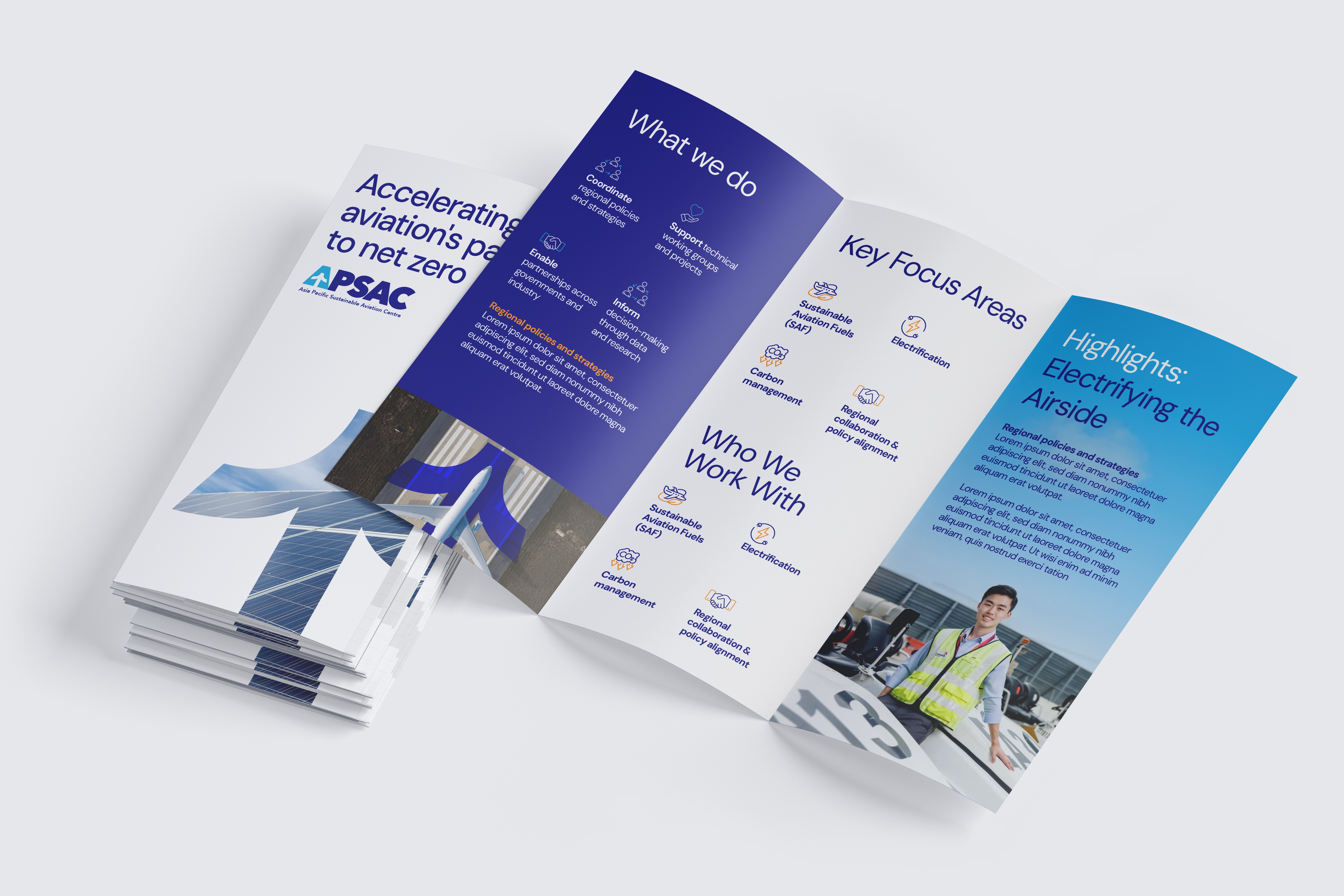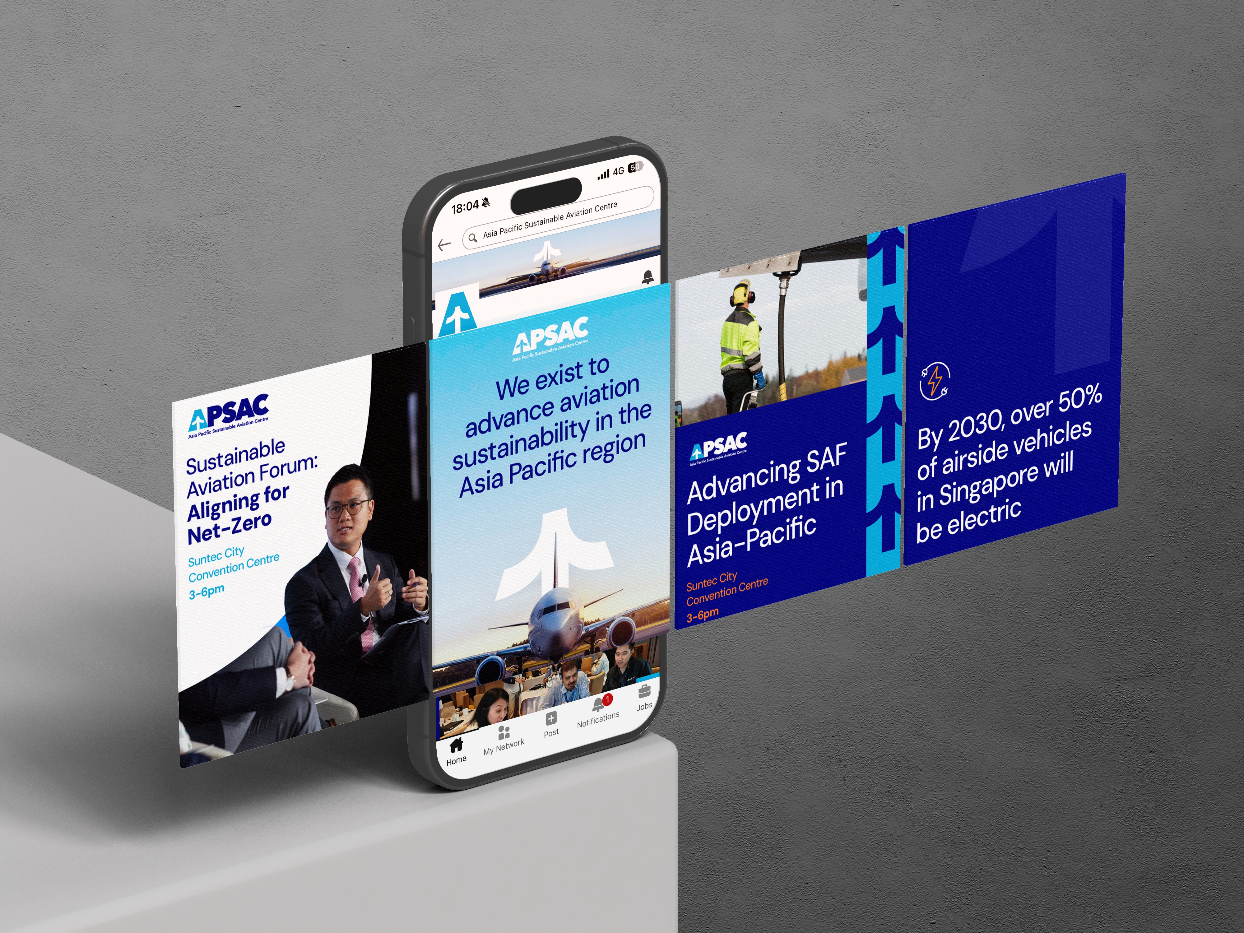 The Asia Pacific Sustainable Aviation Centre (APSAC) was established to accelerate aviation sustainability across the region. As a new organization uniting airlines, governments, and industry stakeholders, APSAC needed a brand identity that could command authority in a complex, technical space.