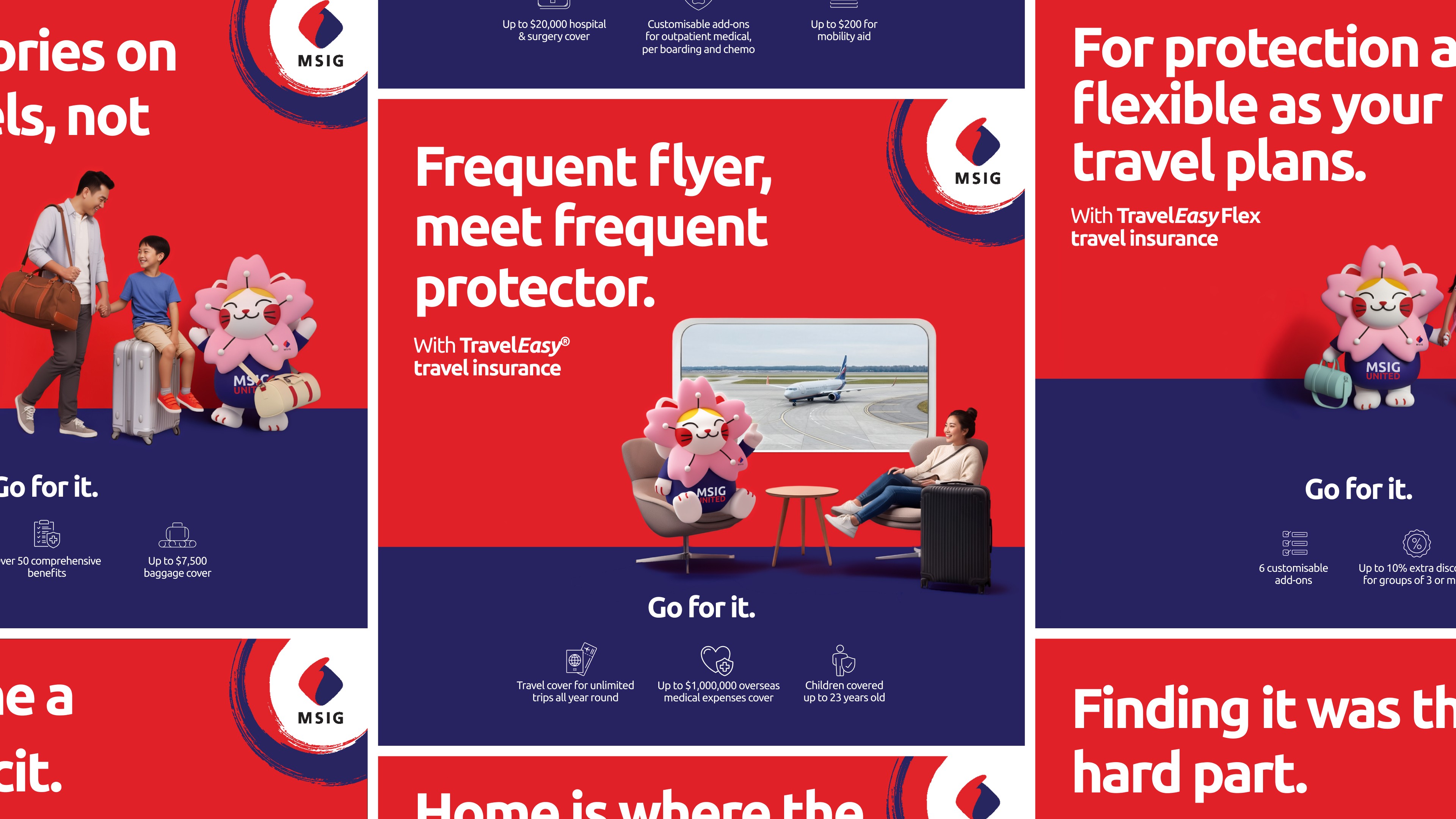 Most insurance brands lead with anxiety. We helped MSIG go the other way. We built a modular creative platform that could flex across seven product categories and every format, from campaign KVs to EDMs to social. One visual system, endlessly adaptable. Protection reframed as empowerment.